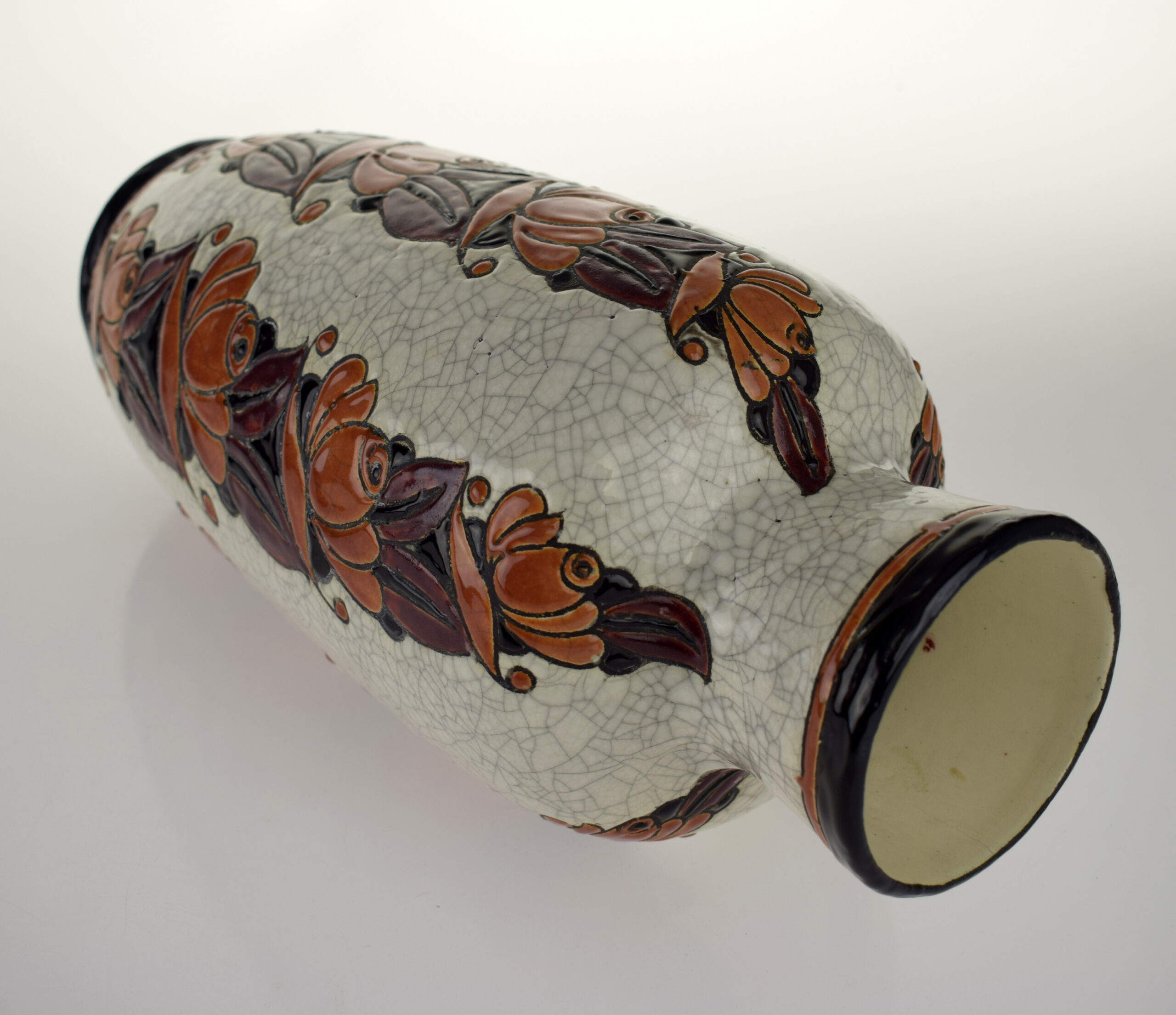 Boch Keramis vaas met decor D1065 ontworpen in 1926 door Léon Lambillotte in het Atelier De Fantaisie van Charles Catteau.