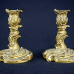 Pair of French bronze Rococo candlesticks from the Napoleon III period (second half of the 19th century).